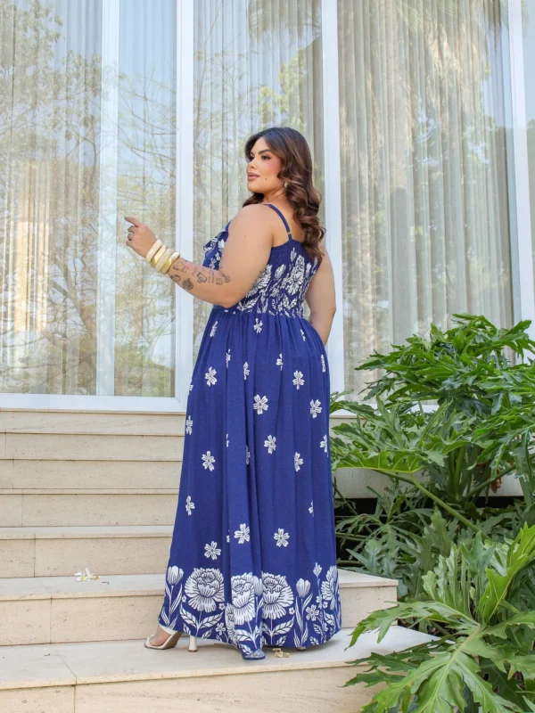 R$143,91 no pix R$159,90 Em até 4x de R$39,98 sem jurosVestido Estampado Azul
