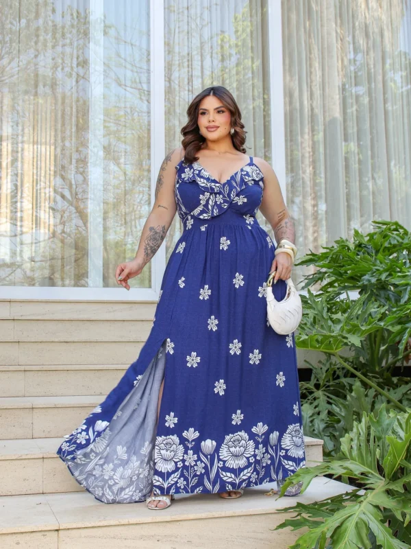 R$197,91 no pix R$219,90 Em até 4x de R$54,98 sem jurosVestido longo laise
