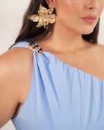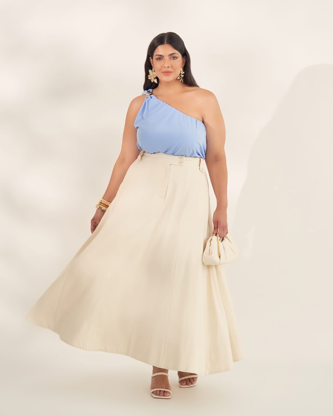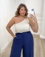Blusa assim assimétrica, com detalhe em metal, camada de top por dentro. Modelo lindo, estiloso e elegante.